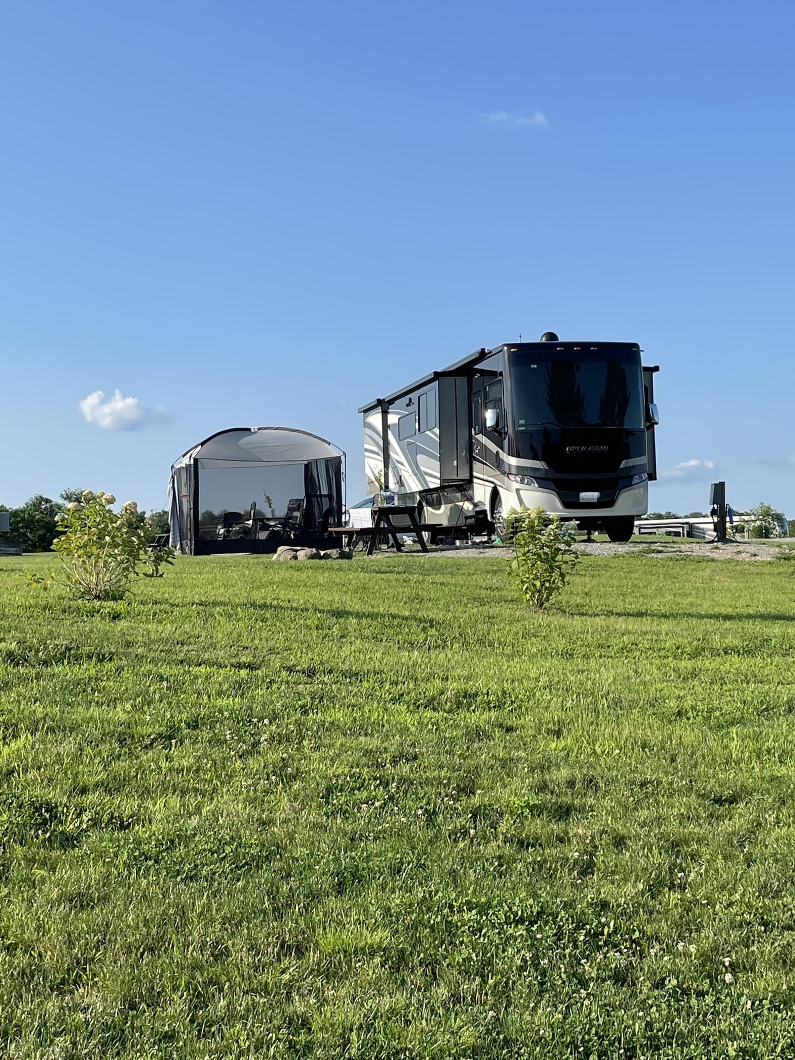 Site 24 is now located on a sunny knoll with intermittent views of the river.Electric (20, 30, or 50 amp) water and sewer.Picnic TableFireplace